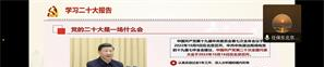 10月20日下午,北京市外事学校党总支组织全校党员,采用线上形式认真学习二十大精神。学校任保东书记主持会议,并传达了二十大精神。 任保东书记首先谈了自己观看大会代表们讨论二十大报告的感想。任书记谈到,通过聆听二十大代表对习近平总书记报告的认识,自己的认识也在提高。党的二十大是在我们党和国家历史上都具有里程碑意义的。这是迈向实现社会主义现代化强国,实现中华民族伟大复兴的关键时刻开的一次大会。习近平总书记的报告,总揽全局,气势恢宏,是一篇闪耀着马克思主义真理光芒的报告,也体现了我们这个百年大党立志复兴的大志向,引领时代的大担当,不负人民的大情怀,兼济天下的大格局,是一个指引我们全党和全国各族人民能够迈上全面建成社会主义现代化国家的新征程,向第二个百年奋斗目标进军的一个政治宣言和行动纲领。