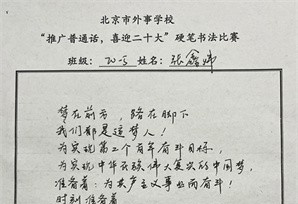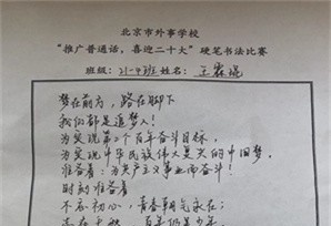 2022年是我国进入全面建设社会主义现代化国家、向第二个百年奋斗目标进军新征程的重要一年,也是中国共产党召开第二十次全国代表大会的重要一年。值此之际,北京市外事学校于2022-2023学年度伊始,组织了题为推广普通话,喜迎二十大 的推普周宣传活动。学校教学处和语文组设计和制定了详细的活动方案。 本次活动学生们通过硬笔书法、软笔书法、短视频、朗诵、演讲、手抄报、黑板报、电脑绘图、H5等形式,宣传《国家通用语言文字法》和相关的法律法规,传承弘扬中华优秀传统文化,展现民族凝聚力和团结精神,提升职业综合素养。