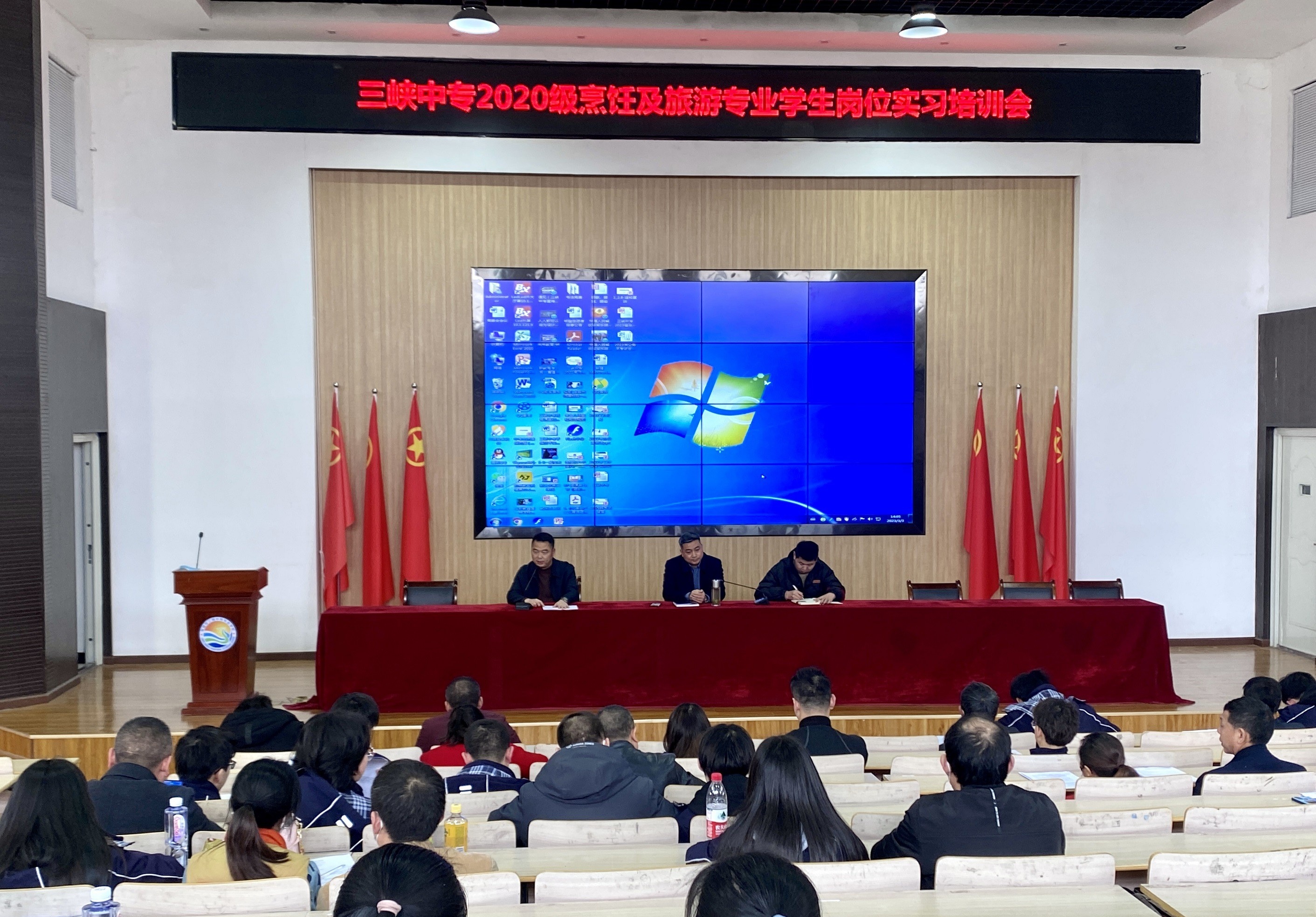 为全面贯彻落实教育部《职业学校学生实习管理规定》,按照学校专业培养目标要求和人才培养方案安排,扎实做好2023年学生岗位实习工作,3月3日下午,我校在阶梯教室组织召开2020级烹饪及旅游专业学生岗位实习培训会,副校长王文军、2020级年级组负责人丁振洋、31名岗位实习学生及家长参会。会议由招就处主任程波主持。