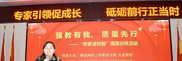 为了提升“双优”校建设内涵和教师专业素养,2月22日下午,岳阳市湘北女子职业学校党支部和教研项目建设处联合启动“强教有我,质量先行---专家进校园提质创优”活动,特邀湖南省教学,职业院校学生技能竞赛国赛评委、职业院校教师教学能力比赛国赛评委,湖南开放大学(湖南网络工程职业学院)专业带头人江波教授为全校教师专题讲授“教案撰写”。党支部书记、校长王玉梅主持启动仪式。龙美华副校长要求全体教师珍惜学习机会,认真倾听专家辅导,努力修炼师德、提高师能,传承师者精神,为培养德智体美劳全面发展的时代新人做出积极贡献。