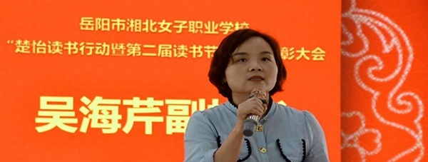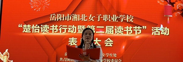 4月21日下午,岳阳市湘北女子职业学校学生处和校团委联合举行楚怡读书行动和第二届读书节总结大会,表彰楚怡读书活动中涌现的先进典型,深入推进楚怡读书行动走心走实。学生处副处长王辉主持,副校长吴海芹讲话,获奖先进典型和一、二年级学生200多人参加。
