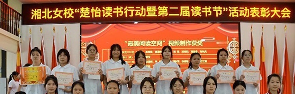 湘北女校一直以来高度重视培养师生养成“好读书,读好书”的习惯,今年开学初,学校启动了楚怡读书行动和第二届读书节活动,根据活动实施方案开展了一系列的读书活动。学校师生围绕学校开出的读书“菜单”,根据各自兴趣爱好开展形式多样的读书活动。写心得,写征文,搞摘抄,制作读书卡,办读书小报,制作视频等。涌现出一个个读书高涨的书香班级和热爱读书的标兵。经过评比,共评出优秀征文36篇、“最美阅读空间”视频21个、“书香班级”9个;幼儿保育(高)2105班黄李佳同学被评为“楚怡读书之星”。