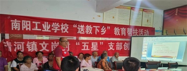 为落实“办好继续教育,加快建设学习型社会,大力提高国民素质”及“五大振兴”工作要求, 8月8日下午,河南省南阳工业学校纪委书记张定群带领机电工程系教师一行顶烈日、冒酷暑深入方城县清河镇文岗村,在文岗村