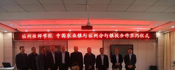 4月10日下午,宿州技师学院与中国农业银行宿州分行银校合作签约仪式在宿州技师学院行政办公楼二楼会议室举行。学院党委副书记、院长徐敬峰,党委副书记、纪委书记许健,党委委员、副院长孙涛,中国农业银行宿州分